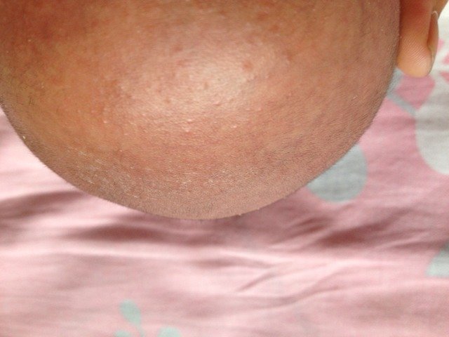 应该是湿疹,最好到医院看看,,可发生在身体任何部位,但好发于面部、头部、耳周、小腿、腋窝,肘窝、阴囊、外阴及肛门周围等部位,发病原因未明了,过敏体质可能是发病的主要原因。急性湿疹常对分布,皮疹有多种形式,表现为红斑、丘疹、水疱、糜烂、渗液和结痂等。自觉剧痒,抓破后可引起感染。病程约2 ̄3周,但容易转...