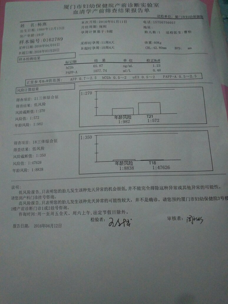 我曾做的试管婴儿怀孕三个月,有甲减一直吃药控制,做了早期唐氏筛查,结果是低风险,1:572,有必要