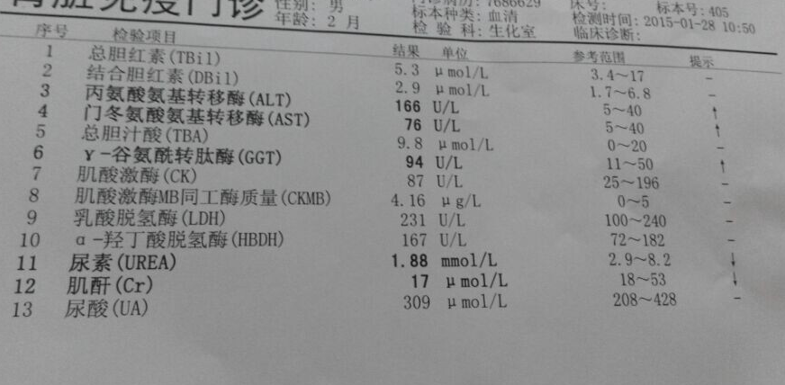三个月大婴儿丙氨酸氨基转移酶、门冬氨酸基转移酶、y-谷氨酰转肽酶高