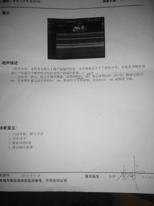 请问宝妈帮我看看宝宝健康、正常吗?胎盘成熟0级是啥意思? 请问宝妈帮我看看宝宝健康、正常吗?胎盘成熟0级是啥意思? 点击展开 136*****596_ohR7 2014-09-10 12:48 为您推荐: 其他回答 健康,正常,不用担心,就是说你的胎盘还没有成熟,还早,胎盘成熟三度才能生,注意定期检查,相信你一定能生个健康的好宝宝。 一天天有太阳 2014-09-10 13:12 相关问题 宝妈们帮我看看,胎盘已经成熟两级了会不会早产呢? 双顶径96 股骨长69羊水最深值61 胎盘1级成熟帮我看看宝宝多大了 大概还有多久能生 宝妈们,我预产期超了5天了,胎盘成熟3,医生说再过2天没感觉就用打催生针了,有没有促进顺产的其他方