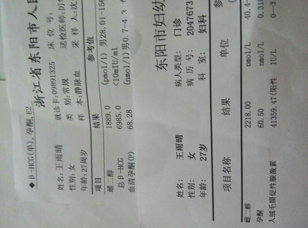 第一张图的HCG血报告单一共两张一张是12号一张是22号下面有两种B超图一张是10号一张是22号