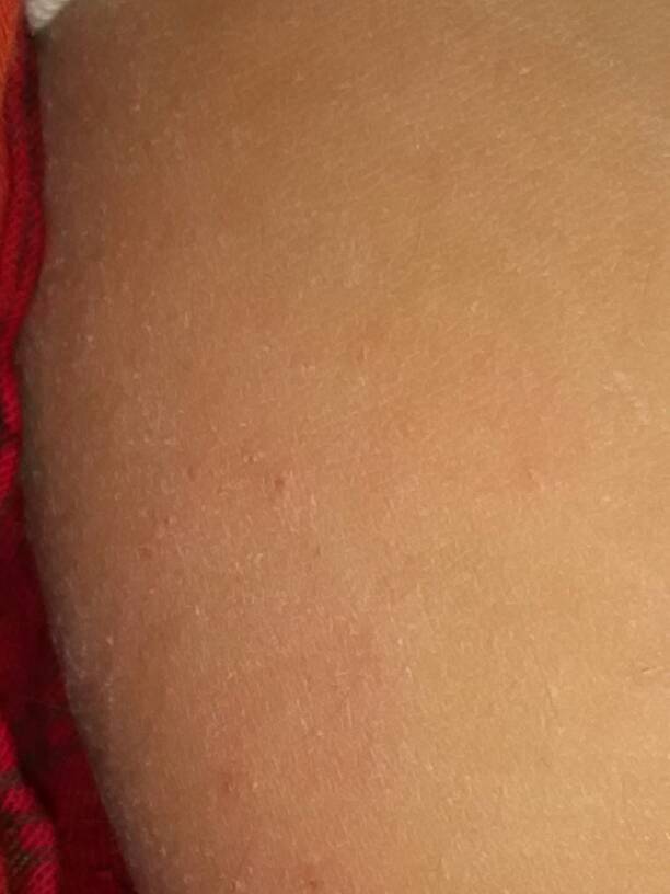 宝宝的小腿出现一小粒一小粒还会痒(如图),请问这是怎么了?是太干燥引起的还是粘到什么东西了