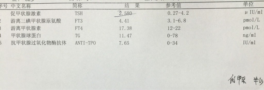 53天(实际可能不到) 做完甲五项,医生说TSH偏高,让吃优甲乐每天半粒,过两周再复查 我想问一下 53天(实际可能不到)。做完甲五项,医生说TSH偏高,让吃优甲乐每天半粒,过两周再复查。我想问一下,我这个TSH算高的吗?平时饮食需要注意什么?可以通过饮食调理好吗?都说这药对胎儿没有影响,是真的吗? 点击展开 blessblm 2016-03-23 20:00 为您推荐: 其他回答 不知道,, 免费招代理私聊我 2016-03-23 20:31 还是问医生, 棉花假人儿 2016-03-23 20:07 问医生。。 🌸冉冉. 2016-03-23 20:06 不高,你用海带调节 luyangli0102 2016-03-23 20:06 百度,,。 我❤我的家 2016-03-23 20:06 加载更多 相关问题 甲功五项有没有宝妈像我的 第一次说FT4:9 78偏低不合格开了优甲乐吃了三周复查又说H一TSH: 第一次检查甲功五项,tsh是2 83,其他正常,医生开了优甲乐鱼头吃四分之一片,一个月复查正常了,医生还让继续吃药,说要吃整个孕期,有相同经历的宝妈吗? 12周孕检,血清超敏促甲状腺激素发光(TSH)4 36,参考值0 27/4 20 医生要我每天空腹口服优甲乐3/4片一次,2周后复查甲功五项 想问下有了解的吗?