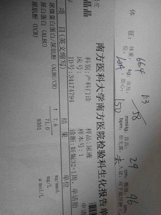 您好:从化验结果看,您的肾功能异常,有可能是肾炎,如果血压高,有可能妊娠高血压的并发症,建议住院治疗,注意休息,避免劳累,保证充足睡眠,如果持续此种症状,容易导致肾功能衰竭,危及产妇和宝宝的生命安全。