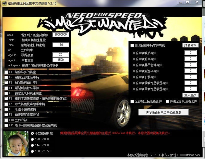 极品飞车9修改器,不要上面带有小孩的,有的话可以发1027336591@qq.com,小弟谢谢大家了,不要这种的↓ 点击展开 匿名用户 2012-07-12 19:14 满意回答 就这种的好用,你还要什么样的啊 匿名用户 2012-07-12 19:16 宝宝知道提示您:回答为网友贡献,仅供参考。 为您推荐: 其他回答 是南京外国语学校2010届高三(6)班 匿名用户 2012-07-12 19:57 相关问题 急求:极品飞车9修改器,就是有小孩照片的那个,那位大哥大姐给发一个,谢谢咯 447641533@QQ com 极品飞车9修改器怎么用啊!全是英文看不懂,谁解释一下啊! 极品飞车9V1 6修改器怎么用 打开是个小孩那个