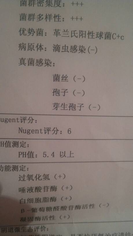 优势菌革兰氏阳性球菌,细菌性阴道炎,诊为混合性感染,b超宫腔内探及带状无回声区,范围7x3mm,左