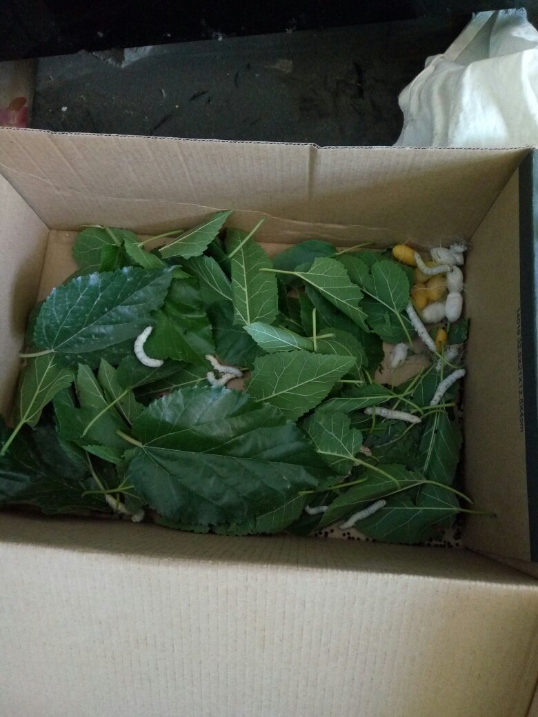 怎么这么小就结茧了呢?要来的时候就有结茧的了!而且半死半活的,可能是饿的,现在好多了,有几条蚕宝宝