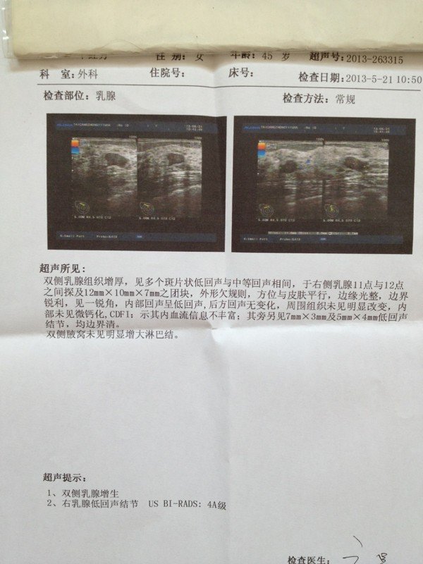 根据病理知识,最好开刀吧,因为乳腺增生有发展成癌的可能,当然你也可以选择保守治疗,就是开刀直接切除比较好,最好问一下医生病因