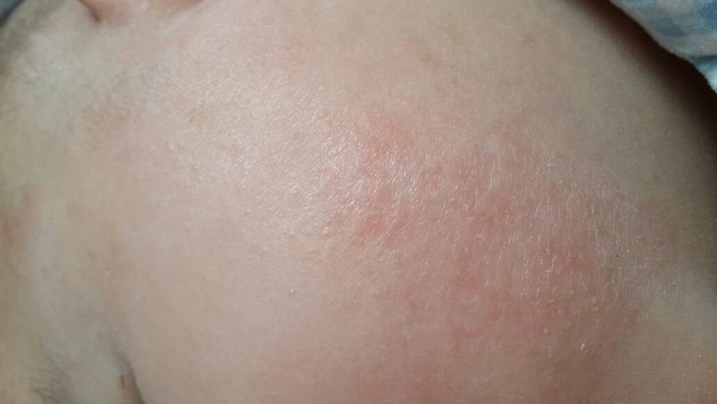 宝宝快五个月了,脸上一直这样,不过身上没有,请问这是湿疹吗?最近我鱼虾一直都没敢吃