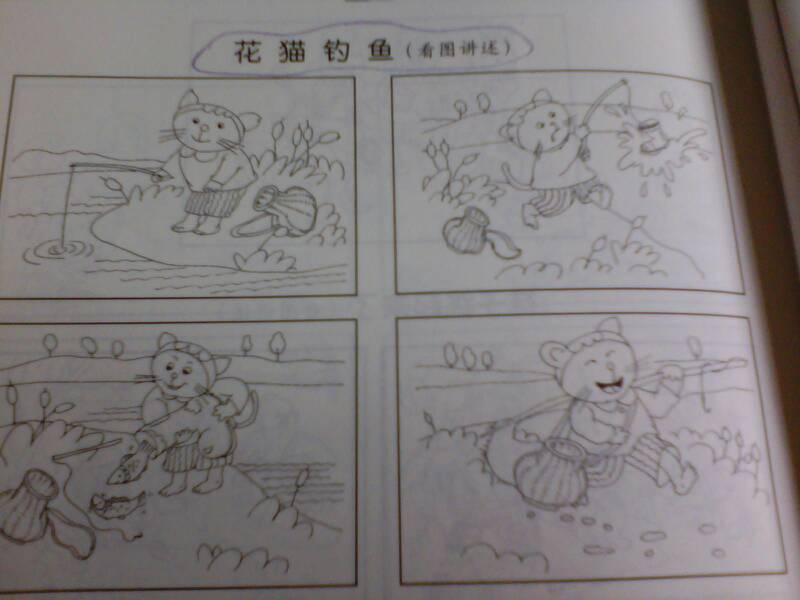 一个天气晴朗,阳光明媚的早晨。小花猫拿起鱼钩到河边去钓鱼。 小花猫钓呀钓,忽然,飞来一只花蝴蝶,小花猫放下鱼钩去捉蝴蝶,小花猫追呀追,没有追到。 小花猫又去钓鱼,过了一会,飞来一只小蜻蜓,小花猫放下鱼钩又去捉蜻蜓,蜻蜓也没有捉到。于是,小花猫又回到河边钓鱼,这一次小花猫可是一心一意在钓鱼,不管飞...