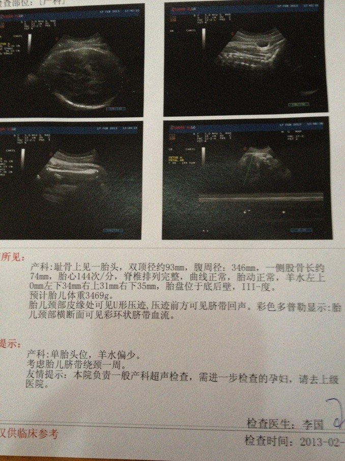 脐带一周可以,2周厉捆就法常不行了,羊水少没问题的,只要清就行了,我当时羊水也半降唉少,也顺产。 胎心很好哦,144次哦。大于120次就好,你宝宝的胎心很强哦!!胎盘位于底,这个情况不乐观,胎盘一般要在左边或者右边才好。在底部,容易大量失血,造成宝宝缺氧。 前面几点我可以保证你顺产,就最后一点胎盘前置宝宝会有危险,所以我也不敢保证顺不顺产,建议您可以找个产婆帮你摸一下,我当时是找了产婆引导我,先在家里开了三公分,到医院就顺产了。