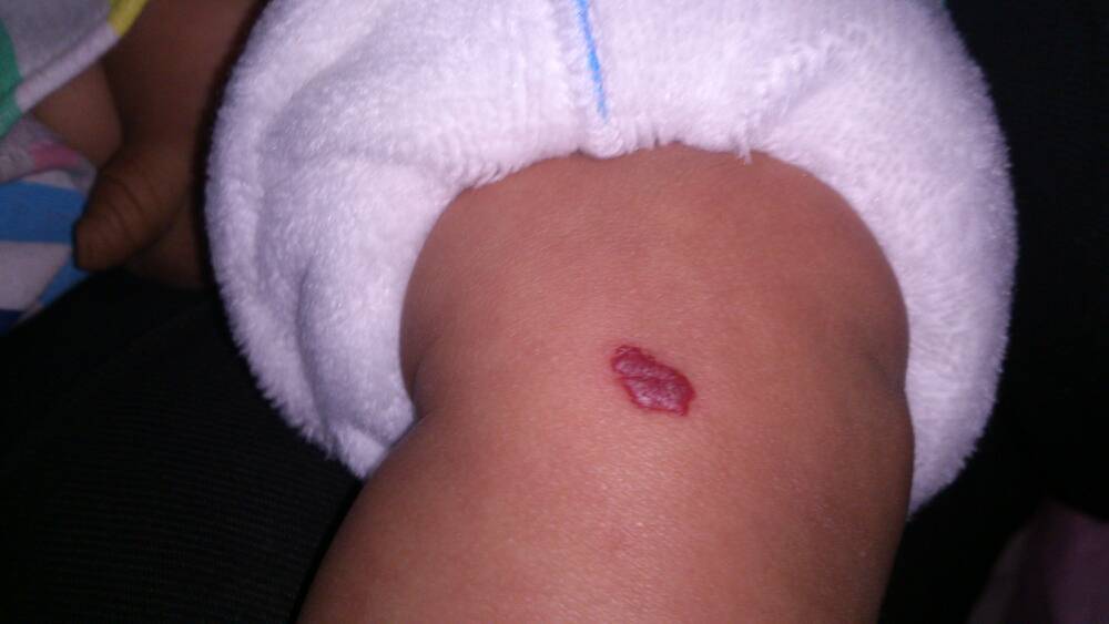 我家宝宝腿上是不是草莓状毛细血管瘤?该怎么治疗可以不让宝宝那么疼?有人可以帮忙吗?