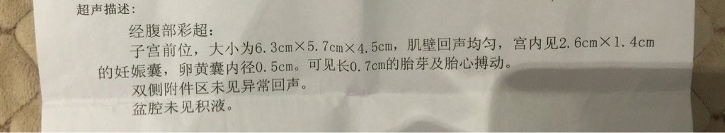 怀孕50天 做BC宝宝 0.7厘米胎芽 如图大家帮忙看看宝宝大小50天正常吗?谢谢 怀孕50天 做BC宝宝 0.7厘米胎芽。如图大家帮忙看看宝宝大小50天正常吗?谢谢。 点击展开 小小金🐒啦啦啦 2015-08-02 18:24 为您推荐: 其他回答 正常的。。 一一ss 2015-08-02 19:30 正常的,, 傻瓜、 2015-08-02 19:19 正常的。。 芳圈圈 2015-08-02 19:18 正常。。。 小筱铖 2015-08-02 19:11 正常l l lfpybl 2015-08-02 19:04 加载更多 相关问题 怀孕六周,B超说未见胎心胎芽,有点担心,有图,这样宝宝会不会有问题??? 怀孕7周零3天了,宝宝才1厘米,请问是不是我营养不良啊? 怀孕50天,b超检查结果子宫前位,大小正常,轮廓清晰,肌层回声均匀,宫腔内可见孕囊样回声,大小约0