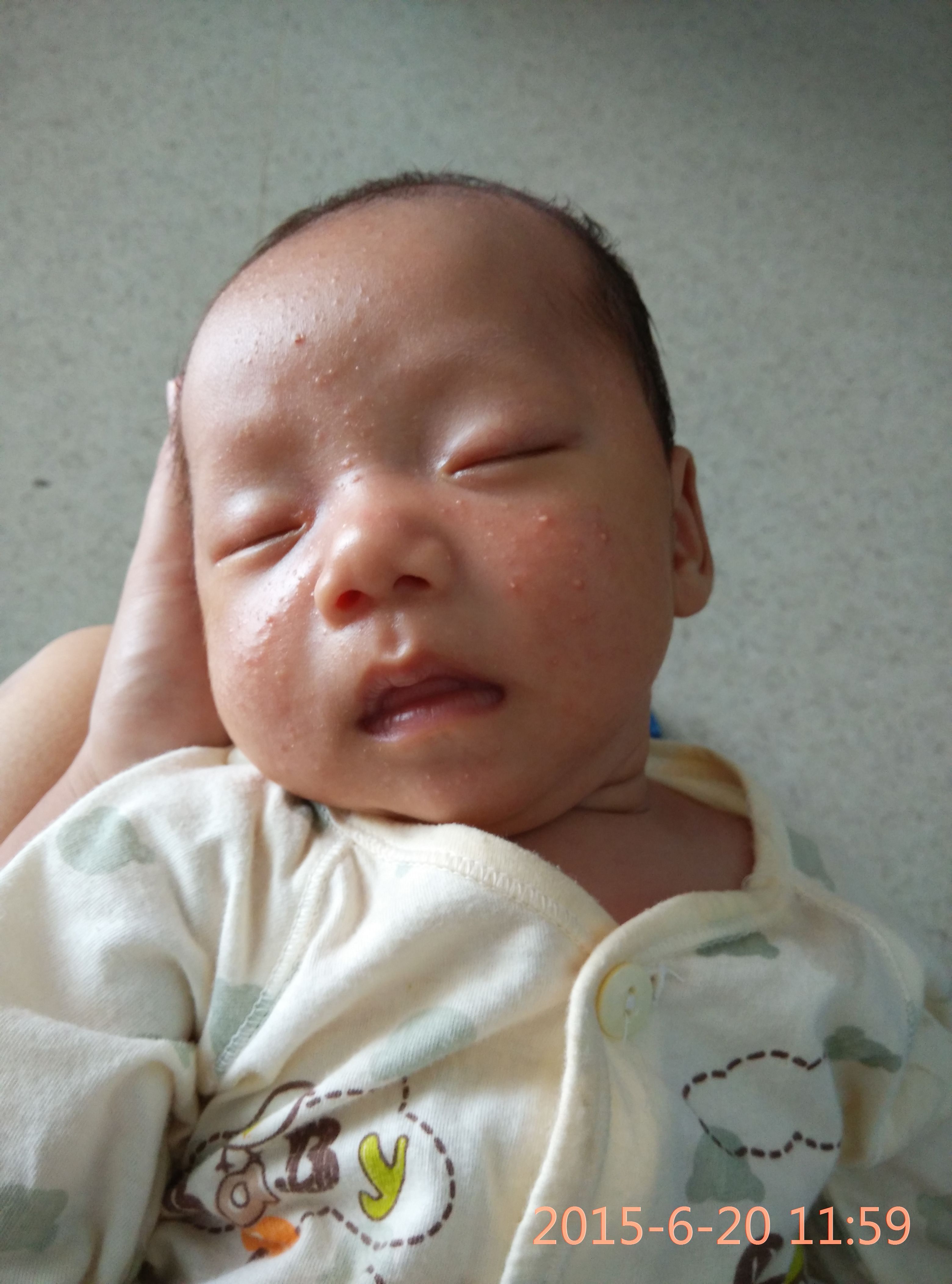 宝宝从出生七天后就开始长这个东西!不知道是湿疹还是痱子!试了很多方法都没有好!去医院看,医生说会自