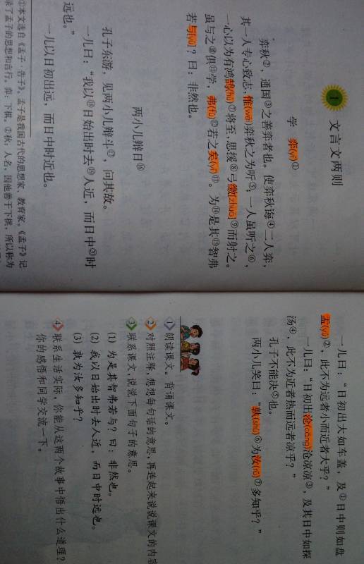《学弈》理解: 弈秋,是全国的一个下棋高手。让弈秋教导两个人下棋,其中一个人专心致志,只听弈秋的教导。另外一个人虽然在听弈秋的教导,但是却一直以为有天鹅要飞过来,心里想着要拉弓引箭射天鹅。虽然他和第一个人一起在学,学的却不如前一个人。难道是因为他的智力不如前一个人?回答说:不是这样的。 《两小儿辩日...