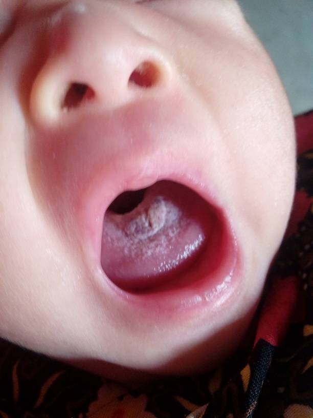 您好!应该是鹅口疮。鹅口疮是由白色念珠菌感染引起。建议平时应注意保持口腔清洁,宝宝吃奶时应把奶头清洗一下,宝宝应注意保暖,保持窒内空气流通。祝宝宝健康!