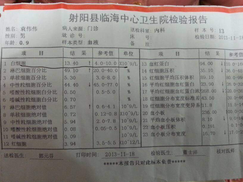 宝宝9个月,体重20斤,十七号下午发热39°,4点钟打了退热针,吃了头孢克唔半袋,晚上八点发现体温 宝宝9个月,体重20斤,十七号下午发热39°,4点钟打了退热针,吃了头孢克唔半袋,晚上八点发现体温不到35°,然后抱起来捂,到今天早上35度九,早上到医院做了血常规,现在改怎么办? 点击展开 匿名用户 2013-11-18 18:03 为您推荐: 其他回答 病情分析: 你好;孩子的情况体温低, 指导意见: 可能是药物作用,不然是体质差,需要加强营养 赫亦凝_2Vv0 2013-11-18 18:34 相关问题 宝宝快一周了,昨晚一点多突然高烧39 5度,给她贴上退热贴,早上起来测体温37 1度,没有别的不良 宝宝十一个月手脚前胸后背发热体温38 9怎么办? 宝宝早上发烧了,手脚冰凉,我用手捂着他的小脚直到手脚发热,刚量了下体温38度,现在该怎么办?