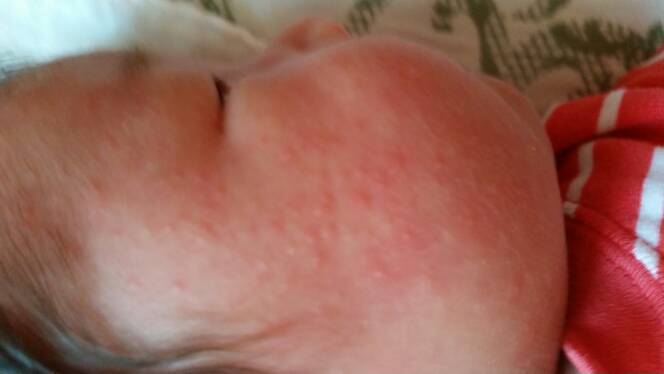 请问有医生么?宝宝脸上这是湿疹还是婴儿痤疮?怎么治啊?可以涂儿研所的肤乐霜么?