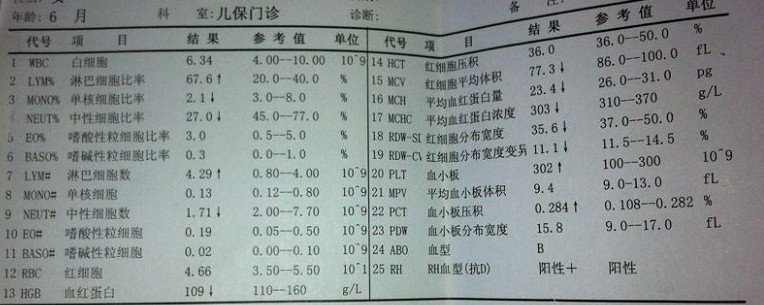 帮忙看一下六个月宝宝的血常规化验单