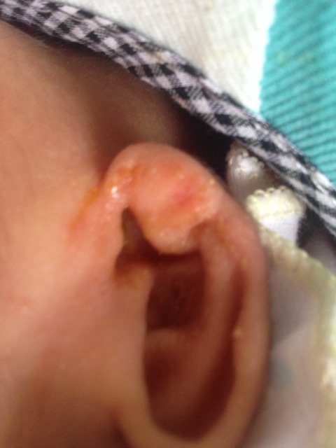 女儿刚满月、突然发现耳朵出血了、不是手抓的、可不知道是什么、急啊、用不用去看看