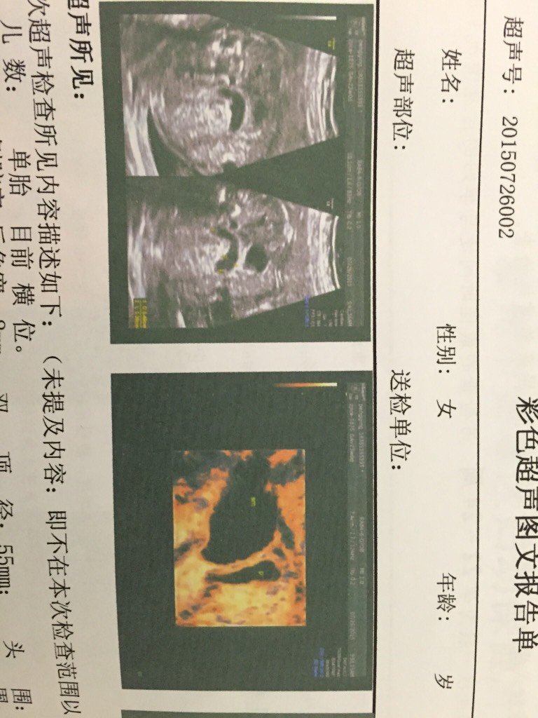 孕22周加6天,今天去做四维彩超,医生说胎儿胃泡旁有一腊肠样28mm*5mm大小无回声的不明结构 孕22周加6天,今天去做四维彩超,医生说胎儿胃泡旁有一腊肠样28mm*5mm大小无回声的不明结构,与胃不相连,请问是不是消化道畸形啊?要怎么办? 点击展开 彭小颖 2015-07-26 13:52 为您推荐: 其他回答 医生怎么说? 菜媛子@ 2015-07-27 13:58 看不懂,拿了結果給醫生看啊 张小严 2015-07-27 10:56 定期,检查。, 女人一世 2015-07-26 23:55 不会看。。。 A凯里宝妈 2015-07-26 22:52 再等等做个四维吧 我的年少时 2015-07-26 20:44 加载更多 相关问题 孕9周加6,B超显示有积液28*8,怎么办,其他都好,33×15的胚胎回声,胎心搏动 有医生在吗?请帮我看看这种情况胎盘长上去的机率是多少?我现在是孕12周加1天 到今天孕7周加6天了,应该去医院做哪些检查?前两周做过一次B超,B超表明尚未发现胎芽胎心,医生让我