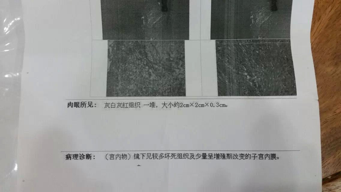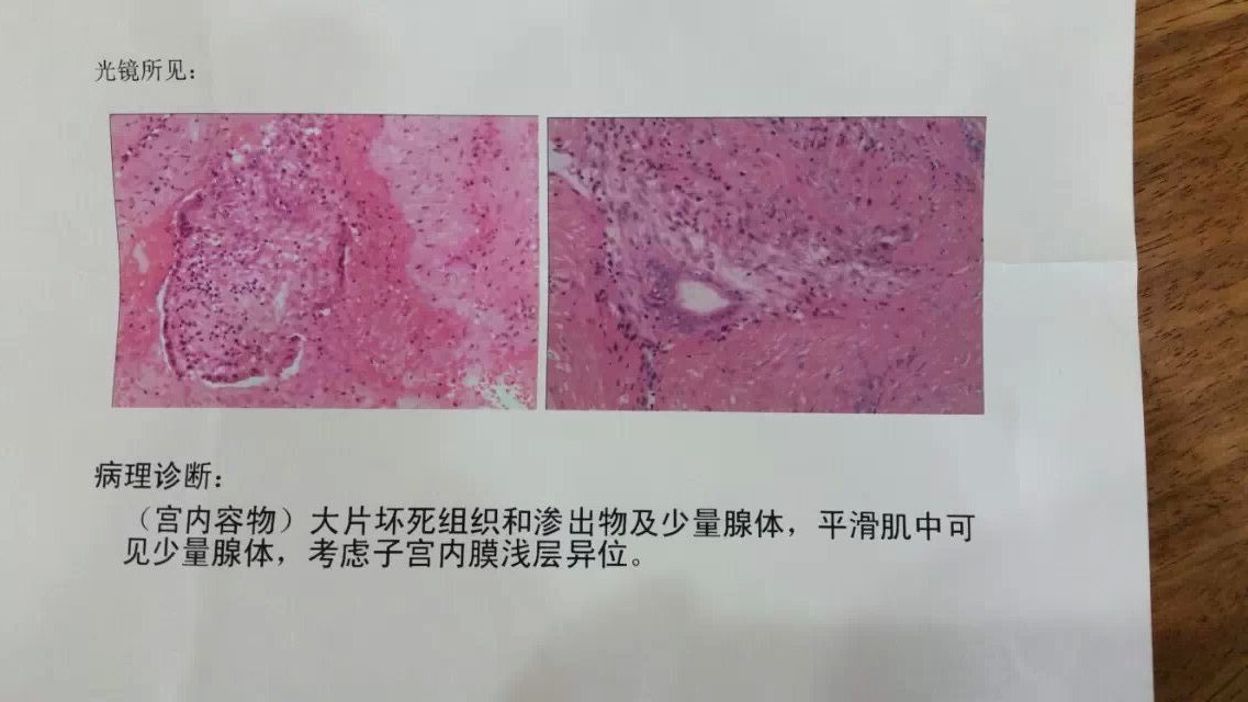 患者年龄28岁,第一台剖腹产,产后一直出血,血色素低到66,B超显示宫腔有残留物,剖腹产手术14天后做的清宫手术,清出的残留物做了病理诊断,附病理图片两张,请求懂得医学知识的博友专家们给分析一下病理诊断的结果,坏死组织是什么东西会坏死在宫腔里!谢谢!