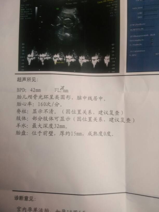 今天去检查了彩超医生说宝宝在那左侧坐着了看不清楚脊柱和肢体因为位置关系 羊水是32mm.胎心160