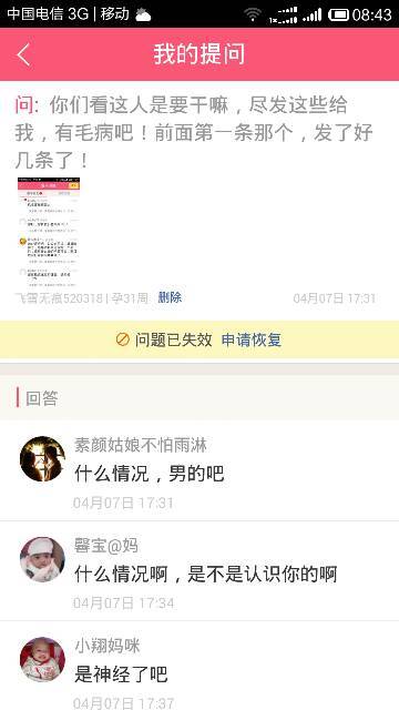 管理有毛病吧,这来屏蔽我???什么人做什么事哦!! 管理有毛病吧,这来屏蔽我???什么人做什么事哦!! 点击展开 美之源~铭宝妈 2015-04-09 08:44 相关问题 幼儿园从管理角度来说,你认为“人、事、物、时空”四大管理要素中最重要的是什么 有人出来管理一下那些打广告的人吗?宝妈们是来交流心得,你们这些不要脸的打广告的人,没事干就回家早点 这怀孕的人得了这毛病怎么办,之前从来没有过的,不能用药吧,那咋办?孕妇得了zhi疮怎么办