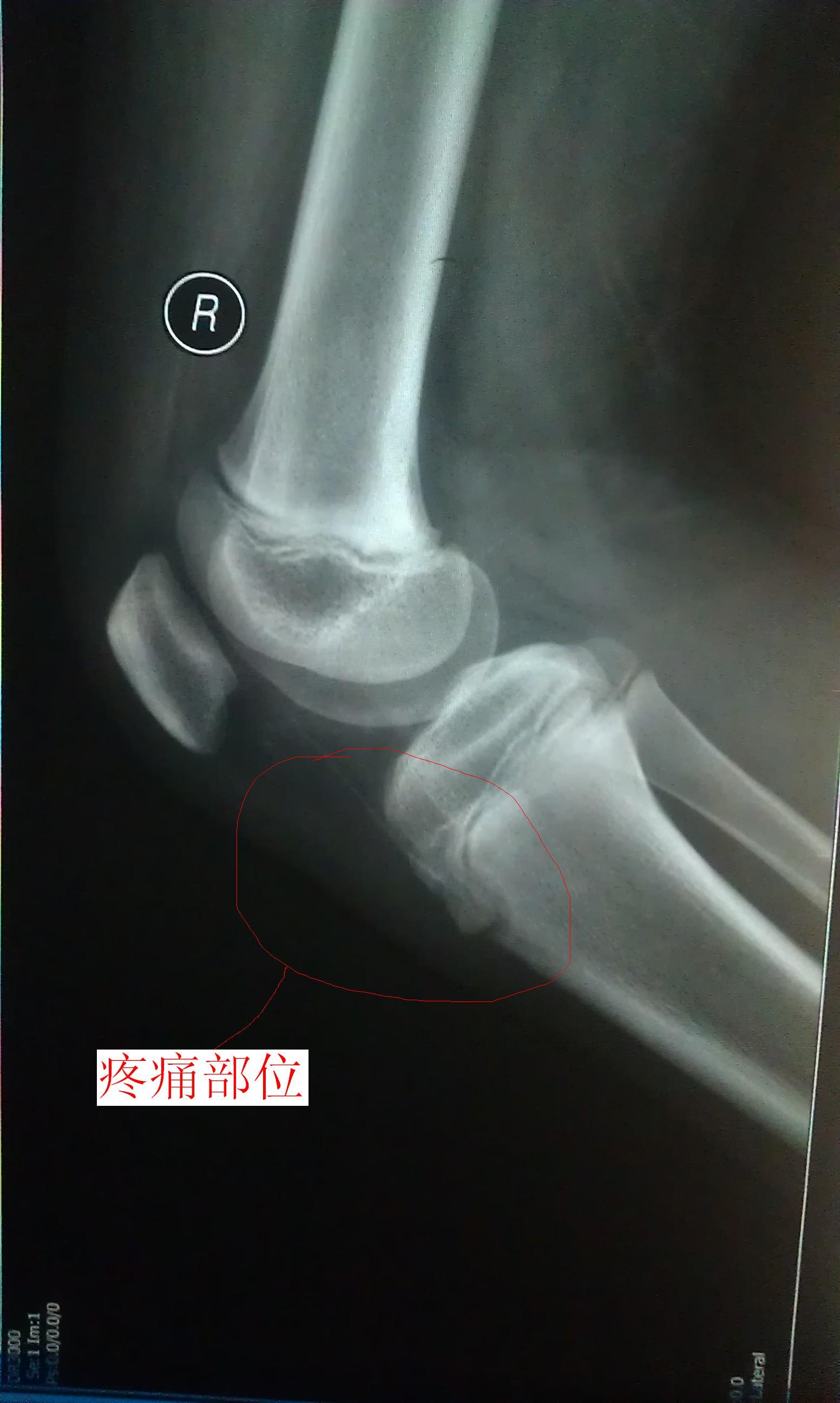 我小孩在近一个多月 下蹲 上站时 膝盖下面总是疼(按他说的意思我在图3标了一下),一开始是右腿,现