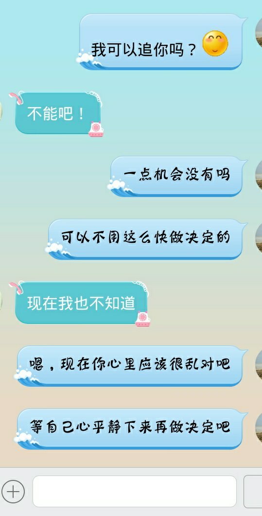 刚追了一个女孩子,她这样回答,是什么意思,我该怎么办? 点击展开 匿名用户 2015-12-01 22:39 推荐回答 她还不了解你的意思,继续追 匿名用户 2015-12-01 22:50 宝宝知道提示您:回答为网友贡献,仅供参考。 为您推荐: 其他回答 应该有机会。 匿名用户 2015-12-01 23:10 看类型,最有效的是强攻,实在不行默默陪伴她,看她性格的,主要你要脸看的过去,家伙要ok,钱么够用就可以,纯爱情么,还是智取好 匿名用户 2015-12-01 22:54 匿名用户 2015-12-01 22:47 没戏 匿名用户 2015-12-01 22:45 加载更多 相关问题 男朋友问我假如有个女孩在追他,问我该怎么办?我该怎么回答? 我现在追一个女孩子,和她qq聊天时总是很僵,我想和她改善一下关系,我该怎么办 追一个女孩 她不理我 回这样的短信什么意思 我该怎么办 回答给你发短信图片 谢谢了