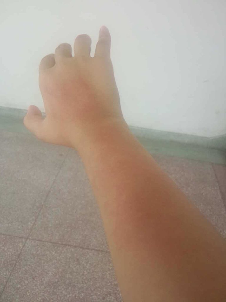 紫外线晒伤敢安岩引起 的过敏性皮炎。需要先处理晒伤,抹些清凉的药物。等皮肤不红了,再抹点治皮炎的药膏。以后要注意防筛则晒,而且必须暴露胳过栋膊的话,就一定要抹防晒霜。