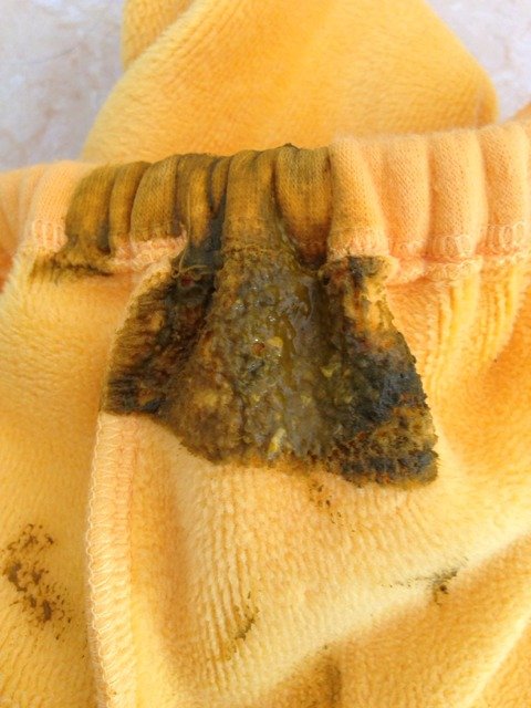求助,各位宝妈帮忙看看拉深绿色粑粑怎么回事?只吃了米粉和苹果,急急急(有图,慎入)