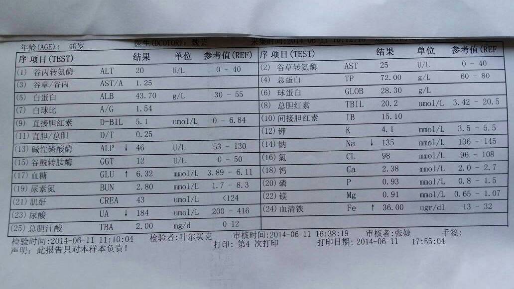 这是我爱人的抽血化验单,血糖比较高,化验尿糖也高,医生说明天去医院喝糖水筛选什么的,我爱人今年40