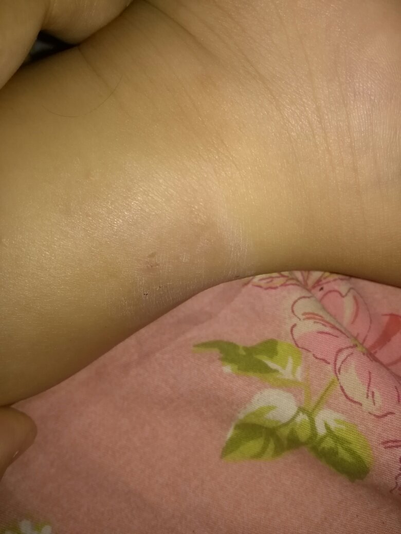 宝宝2岁多,前两天睡醒左右脚脚踝处大片红肿,不知道是什么东西咬的,不起包,但有针扎式的血点,一边脚 宝宝2岁多,前两天睡醒左右脚脚踝处大片红肿,不知道是什么东西咬的,不起包,但有针扎式的血点,一边脚宝宝2岁多,前两天睡醒左右脚脚踝处大片红肿,不知道是什么东西咬的,不起包,但有针扎式的血点,一边脚踝处还有破皮,我不知道破皮是宝宝自己抓的还是被咬的,没有流血。另一边脚踝就几个小点,还是对称的,我现在就担心是不是老鼠咬的,大家帮我看看,已经过去三天了,破皮的地方结痂了 点击展开 匿名用户 2016-08-05 08:18 为您推荐: 其他回答 可能被蚊子咬了。被蚊子咬也这样。蚊虫叮咬过敏。就这样。抹点风油精。 匿名用户 2016-08-05 09:01 像是划破的,或者是宠物咬伤 匿名用户 2016-08-05 08:24 相关问题 孕妇脚上一个一个的小血点,怎么回事 脚上的小血点有可能是月经4个月没来然后毒素排到脚上去了吗?? 去河北省二院做骨穿挂什么号,在本地医院查血血小板30,脚踝处有血点,月经量多时间长