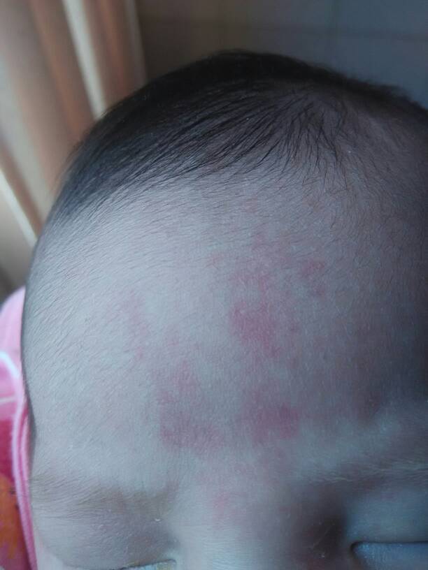 1、橙红色斑(或鲑鱼红斑)。约1/3的新生儿都会出现这种胎记。它是一种小的、淡红色的斑块,通常平铺在皮肤上。多出现在后脖颈上、两眼中间、前额以及眼睑上。随着孩子不断成长,多数会逐渐消失。