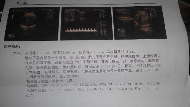 这是今天做彩超,可以看清吗?有没有什么问题呢?有那位宝妈会算宝宝有多重了呢? 点击展开 198 2014-12-11 19:30 为您推荐: 其他回答 你好,看胎儿的大小接近足月了,羊水指数正常,胎心率正常,体重大概是在6 7斤左右的吧,祝你生产顺利。 文斯6 2014-12-11 20:44 相关问题 宝妈们,今天抽血归来,帮我看看我宝宝现在有多重了,谢谢 今天去做四维彩超,希望宝宝一切都好,宝妈给点正能量吧 宝妈37周,但是今天彩超宝宝比实际周数小3周,怎么办?愁…