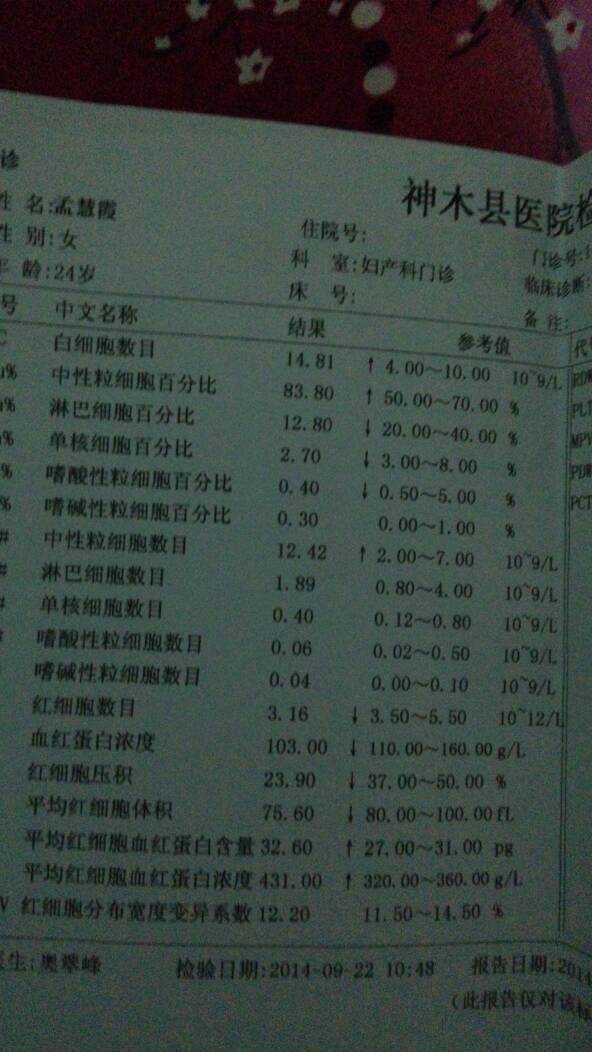 有没有懂这个的,看看我这个这么多箭头,影响大吗?对大人和小孩 有没有懂这个的,看看我这个这么多箭头,影响大吗?对大人和小孩 点击展开 善良的土豆 2014-12-18 22:30 为您推荐: 其他回答 您好,箭头向上的提示检查结果高于正常值,向下的是低于正常值,根据检查结果提示有炎症及有轻度的贫血,建议在医生的指导下药物治疗。 cn#BBGBVfBauV 2014-12-19 08:05 医生说没事就不用担心 钰东宝贝儿 2014-12-18 22:58 医生怎么说嘛 笨小孩_K7HM 2014-12-18 22:55 没有事,数值不是很高,正常范围 总有刁民想害朕 2014-12-18 22:41 有炎症,还贫血 136*****928_sRH7 2014-12-18 22:41 加载更多 相关问题 九个月的小孩听得懂大人的话了吗 3岁小孩说话大人都听不懂 帮我看看我的结果,hcg的箭头是什么意思呢?