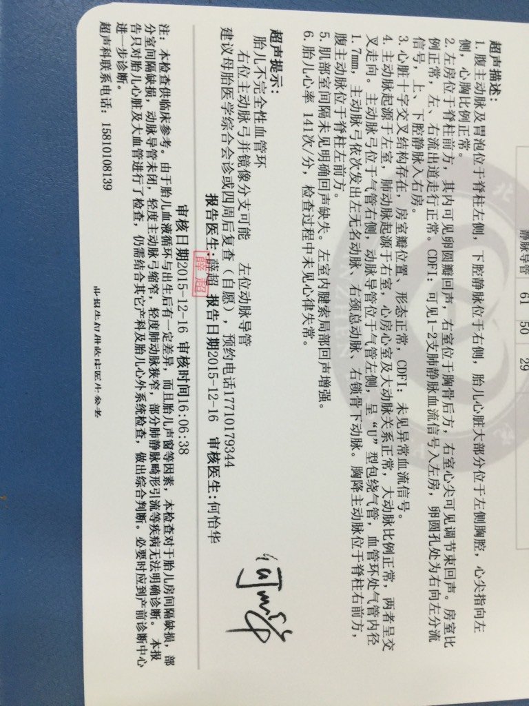 胎儿血管呈U型包住气管,宝宝出生后做什么手术?术后可以健康成长吗?会影响以后生活吗?这个手术是大手 胎儿血管呈U型包住气管,宝宝出生后做什么手术?术后可以健康成长吗?会影响以后生活吗?这个手术是大手术吗?现在孕25周+4天 点击展开 暧昧暧昧爱你妹_mJyJ 2015-12-17 21:25 为您推荐: 其他回答 不知道(⊙o⊙)哦 锁心_ryds 2015-12-17 23:04 问问医生啊 女王范︶ 2015-12-17 22:43 问一下医生 情爱♀懒虫 2015-12-17 22:37 这个听专业医生的 小唐、 2015-12-17 22:15 问医生吧。。。 Guo.huachao 2015-12-17 22:02 加载更多 相关问题 有怀孕查出气管环的妈妈吗?血管成U型包绕气管,你们都留下宝宝了吗?出生后怎么样? 支气管毛细血管扩张病人做流产手术有危险吗?在做手术前是否需要检查子宫有没有毛细血管扩张?怎么检? 我的四维彩超中显示:心脏三血管气管切面,可见''U''形血管环,将气管包绕其中,谁知道是怎么情况?