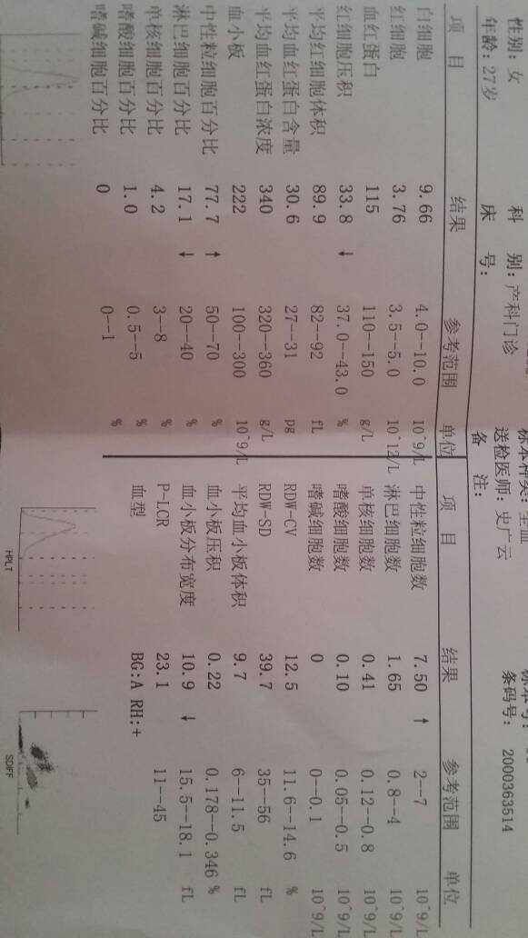 怀孕十七周查血细胞分析的单子,懂得人帮我看看正常吗? 点击展开 xiaoyang251314 2015-08-02 12:59 满意回答 你这是查的血常规单子夕府,主要看挡套白细胞和红细胞血红蛋白还有血小板的数值有无异常,絮室卜你查的都没有问题,那几个箭头项目都不是重要参考项目 zhouhouyun1 2015-08-02 13:10 宝宝知道提示您:回答为网友贡献,仅供参考。 相关问题 十七周查什么 怀孕十七周查的女宝,到底还能不能翻男啊 怀孕十七周查的男女,翻盘的几率大么???