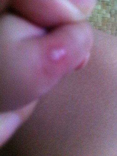 宝宝八个月 之前手上被蚊子叮了俩包 她一直吃手 现在快一个月了 包也不消 还长大了 变成米粒大小的