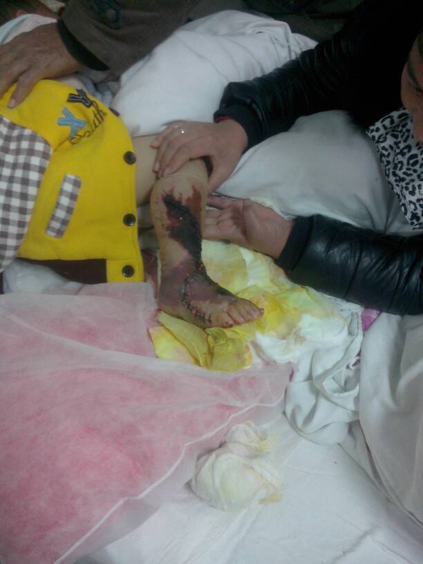 2周9个月的宝宝在路边玩耍,被农用自卸车撞到,经检查右小腿大面积撕脱伤,第一次手术伤口处理不当,造 2周9个月的宝宝在路边玩耍,被农用自卸车撞到,经检查右小腿大面积撕脱伤,第一次手术伤口处理不当,造成肌肉坏死 点击展开 136*****137_CtW8 2015-01-30 22:21 推荐回答 目前主要是征贸积极预防感染为主,需要结亲蔑葛合当地医生定期进行植皮手术治疗耗电, 爱狂风一样舞蹈 2015-01-31 10:09 宝宝知道提示您:回答为网友贡献,仅供参考。 相关问题 母亲不小心摔了一下膝盖下小腿前面受伤有一个小伤口输… 7天前,右小腿被抽屉的铁把手扎破,去医院做了伤口包扎… 7天前,右小腿被抽屉的铁把手扎破,去医院做了伤口包扎…