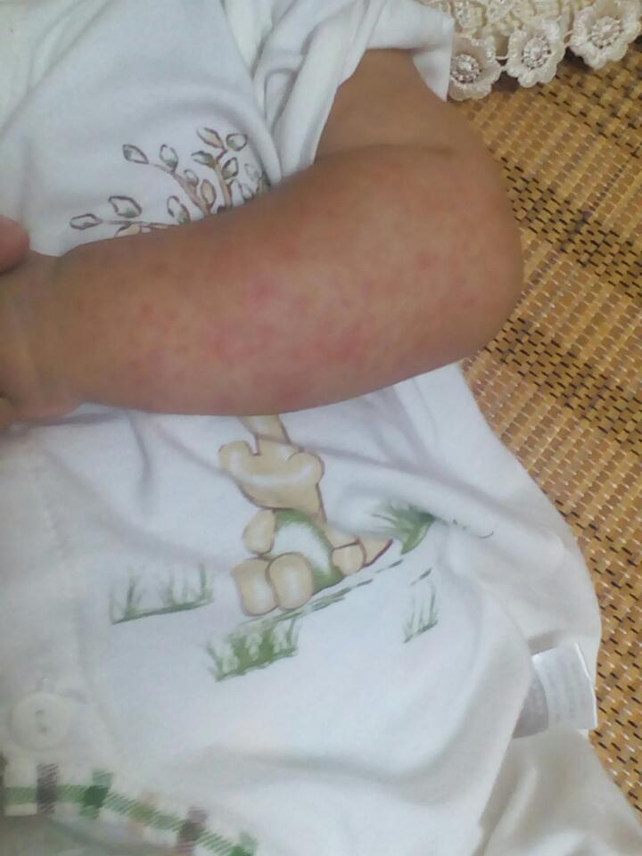 四个月宝宝手上长得像痱子一红点点,看他不痒,这到底是怎么回事,是过敏,还是湿疹啊