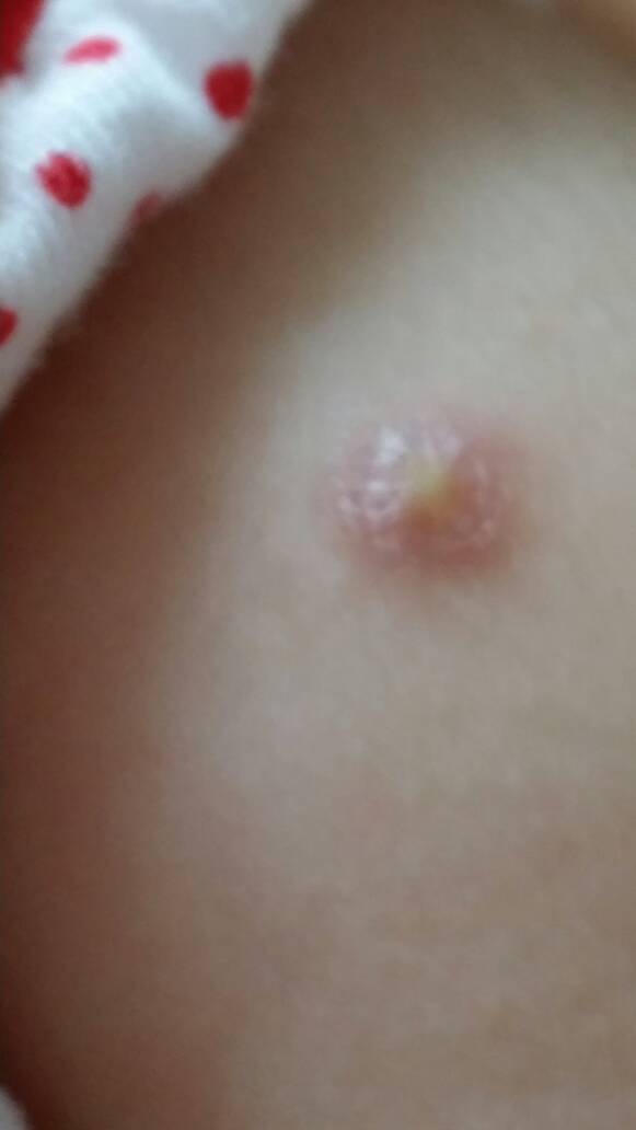 我宝宝都三个月了,这几天发现出生时手臂上打疫苗的地方本来是个小红包,现在却中间有浓,但是没破,请问