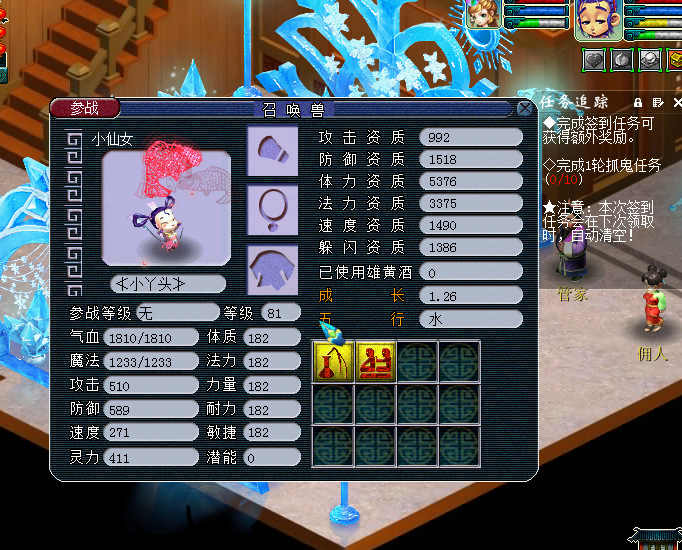 梦幻西游LG 养的PT孩子资质如下:G-992/F-1518/T-5376/法3375/S-1490/躲避-1386/成长1.26 这个熊孩子怎么样?该怎么分配潜能?要打什么书实用不PK 望高手莅临指导! 点击展开 匿名用户 2015-06-30 00:55 满意回答 两体两耐一敏 控制速度的话 就把那一敏加到体梅炼上 打高防 和高峡耻查冥崇菜思 任务专用 侯庄雅_2plF 2015-06-30 16:47 宝宝知道提示您:回答为网友贡献,仅供参考。 相关问题 梦幻西游中 我刚得到一个天将宝宝 资质 攻1450 体4500 高强力 值得练不 我LG 58级 宝宝怎么加点 梦幻西游想收个109LG或者DT号,800元能收个咋样的?技能属性宝宝什么的!!! 梦幻西游109lg 开什么宝宝店最好!无以伦比菊花台区!商业指数%90