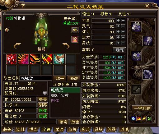 优点是资质还可以,技能少一个咆哮,至少有高级肉墙,不然没法单刷。不过你宝宝是带妖的,身法高,这样怪打你宝宝就有未命中,单刷效率低。可以提一个悟性,现在才4。卖的话,要看你是哪个区了,新区的话,还是可以卖个一两千的,老区的话有人要就不错了!