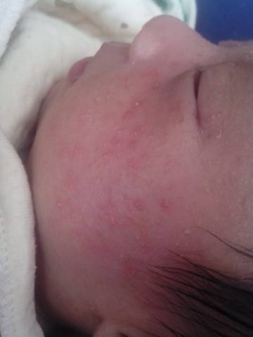 湿疹,每天给宝宝洗脸,洗完脸,要擦干,保持皮肤干燥,不要穿太厚,开窗通风,不要潮湿,宝妈不要紧张,很平常的一种病。