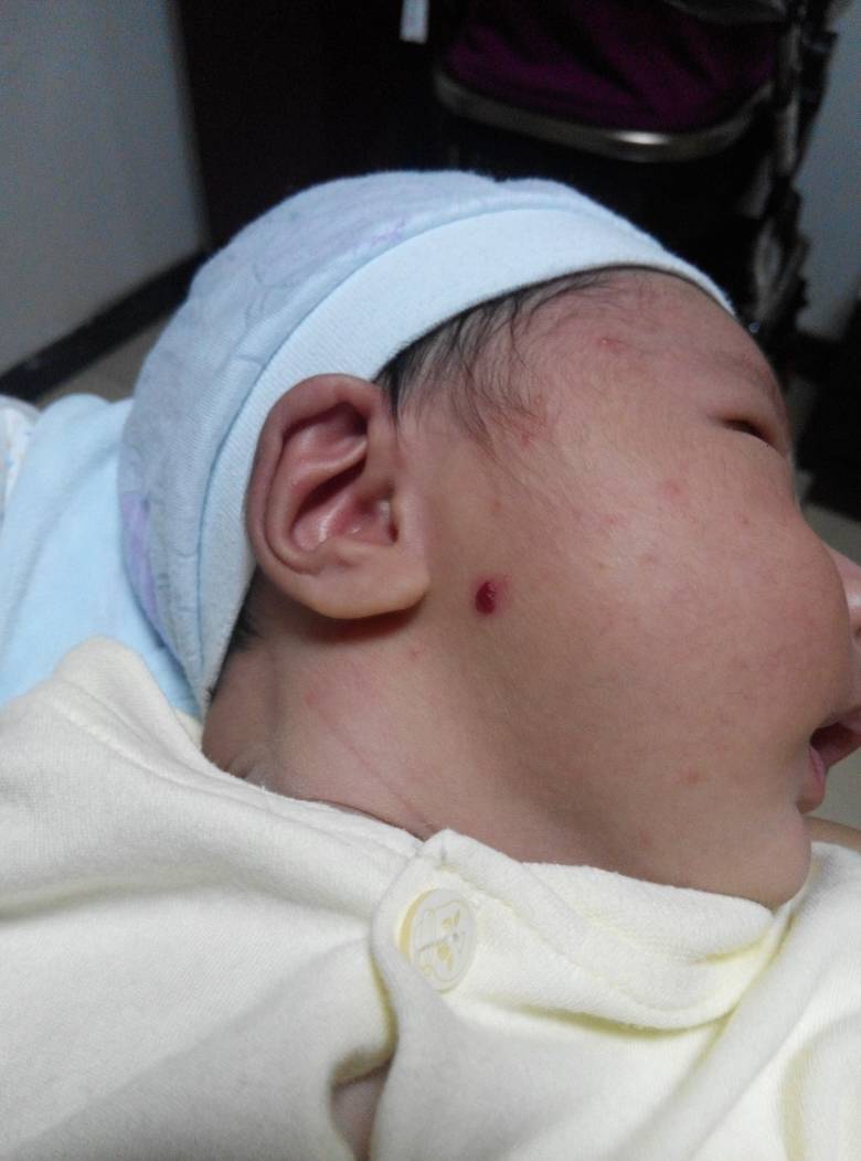 我想问下我宝宝生下来耳垂下面有个红点,刚开始以为是蚊子咬的就没在意,现在过了20天发现红点越来越大