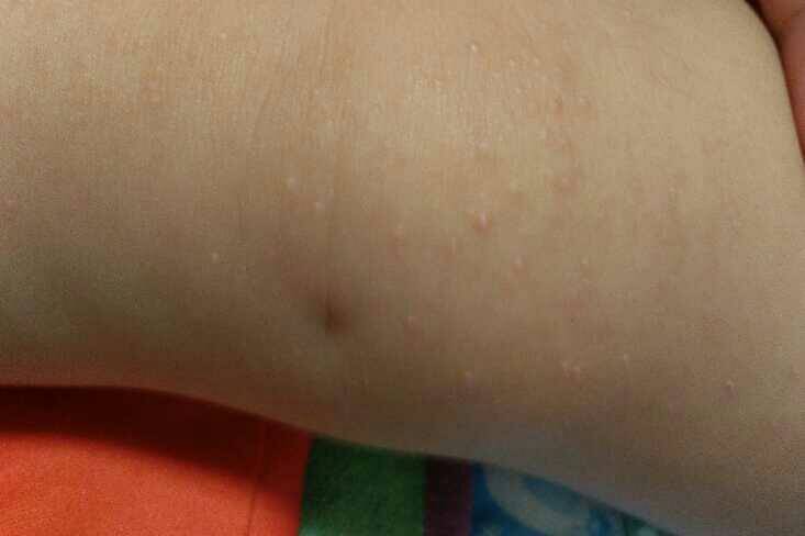 我家宝宝七八个月的时候腿上就长了像脂肪粒似的小疙瘩 只是在腿上,无痛痒感现在十一个月了还是没下去