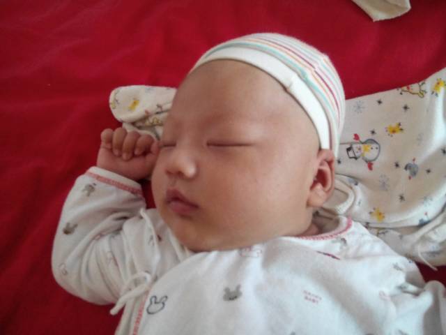 出生的时候脸上只是长的白色籽籽脸上也干干净净的,过后才长的湿疹,脸上红红的也掉皮了