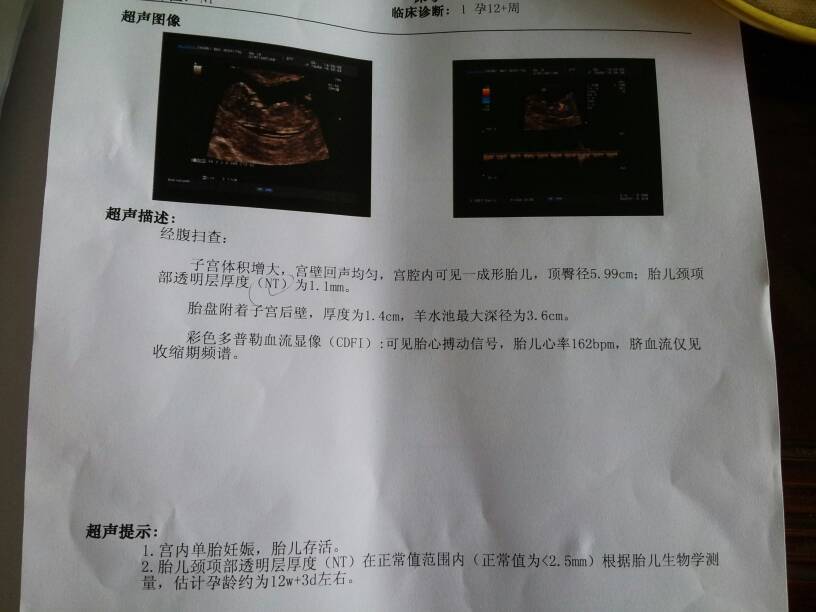 今天去照了NT彩超,医生说要在24小时之内抽血检验唐氏,才能结合今天的NT检查,不然今天照的NT彩